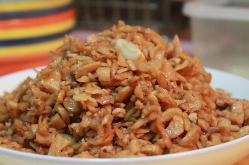3、锅里不放油,中火炒干萝卜干,炒熟乘出待用。