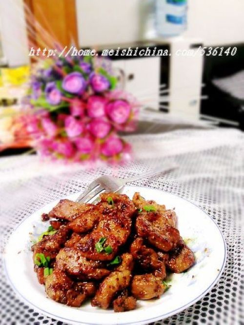 上个星期天去东门,那个人山人海吖,特别是在那卖巴西烤肉的地儿挤都挤不动,都排好长的队去买,这世上喜欢美食的还真是不少吖,那烤肉的几位大叔烤的那是满脸通红,大汗淋漓,想这大冬天的能把大叔都烤成那样,大家想想那生意都火爆成啥样了。 既然大家都那么热衷那烤肉,咱俩也刚好累了,也没力气去挤了,来串烤肉尝尝呗,大叔,来两串烤肉,那边先买票,10块,哇,还真不便宜也,就那几块肉要10块哒,买票,排队,有羊肉,鸡肉的,我们都不吃羊肉,拿了两串鸡肉闪到一边儿吃去了,嘿嘿,味道挺好,孜然味道很香浓,有点小辣,,主要的是肉质很细嫩,不材不老,就是因为肉质嫩,所以我吃不出鸡肉的味道来,咋越吃越像猪肉呢。 吃了他家烤肉,那味道一直围在嘴里,到家了想想还会吞口水,想来想去,我决定自己弄,没有烤箱怎么办,嘿!我不是还有一可爱的平底锅吗,,没错,就那平底锅了,成功了就到他面前炫耀一翻,万一失败了最多中午的碗我洗,想到就干,早上10点钟起床(不上班的话,我们一般都睡到中午12点的) ,匆匆洗潄完进厨房准备。。。。 经过一小时的折腾终于弄好了,赶紧得来一块尝尝,嘿!,肉质一点都不材,很嫩,加上孜然的特有香味,一股香香,麻麻,辣辣的味道在我口中盘旋,赶紧的把他从床上拉起来吃肉肉,哇!哪来的烤肉,跟我们昨天在东门吃的一模一样!又麻又辣,又有烤肉的味道,好吃!哇!成功了,要的就是这种效果,等我刷个锅出来,这一盘就给他干掉了一半,成功了,以后再也不用送银子给那烤肉大叔了。咋发现自己越来越厉害了哒。。 今天这款【香麻肉】献给跟我一样家里没有烤箱的童鞋们,如果你们也喜欢烤肉,可以试试这种方法,味道很好,香气扑鼻,更重要的是干净卫生,不管是下饭还是下酒都是很不错的选择哟!