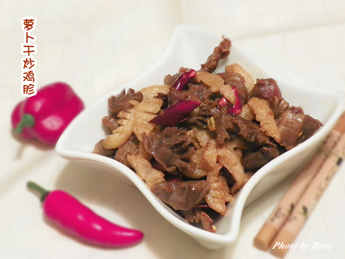 萝卜干炒鸡胗烹饪方法 图片大全及制作所需厨具设备是网友推荐小编整理所得,是网友的分享推荐,是饮食文化的资源共享,中华美食文化是中华文明的具体践行,美食萝卜干炒鸡胗烹饪制作就是在传承中华文化。