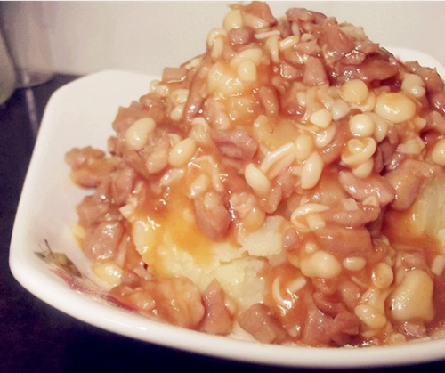 及以下步骤:放适量水煮下。以确保肉肉够熟。 煮至收汁时加入适量番茄酱,糖。 翻煮均匀即可。 铺在土豆泥上面。完成啦。 酸酸甜甜又有点肉末嚼嚼的土豆泥。非常适合孩子和老人家食用。 放适量水煮下。以确保肉肉够熟。 煮至收汁时加入适量番茄酱,糖。 翻煮均匀即可。 铺在土豆泥上面。完成啦。 酸酸甜甜又有点肉末嚼嚼的土豆泥。非常适合孩子和老人家食用。