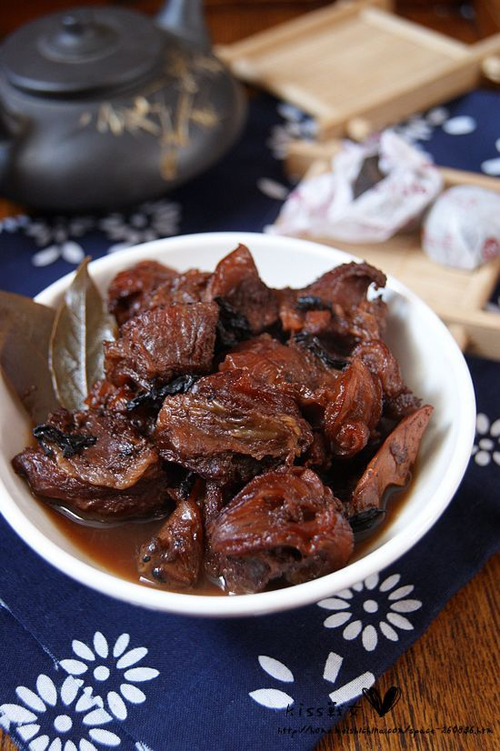 及以下步骤:此菜特点:牛腩润而不烂、茶香浓郁。 牛腩洗净,切成块。 取一大碗,放入切好的牛腩,加入桂皮、八角、五香粉、普洱茶、酱油、白砂糖。 牛腩洗净,切成块。 取一大碗,放入切好的牛腩,加入桂皮、八角、五香粉、普洱茶、酱油、白砂糖。 倒入冷水,水要没过牛肉 腌制7-8小时。 将牛腩连腌制汤汁和调料一同倒入砂锅中。 大火烧沸,撇去浮沫,改用小火炖2小时。 关火,揭盖食用。 此菜特点:牛腩润而不烂、茶香浓郁。