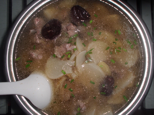 及以下步骤:我都忙着拍照片,我都没有吃,不和你们说了,我开吃去了。 我把四川萝卜老姜切好了,就等着了。 我妈妈从龙游带来的枣子。我觉得看不出来有什么的吗? 我把四川萝卜老姜切好了,就等着了。 我妈妈从龙游带来的枣子。我觉得看不出来有什么的吗? 我先把排骨过一下水,在水里放了老姜,料酒。 烧的差不多时,把水面上的白色泡沫捞起,再换个锅再开始下个步骤。 把材料(排骨 萝卜 枣)全部放下去,开始计时,等着。。。 哇塞,终于好了,好香哇,我没有放味精哦!我放了一点点胡椒粉,我觉得很很很不错滴。。。 我都忙着拍照片,我都没有吃,不和你们说了,我开吃去了。