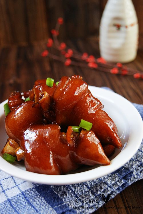 猪蹄煎炸过再烧,皮比较筋道且不油腻,但一定要马上冲冷水才能达到效果。