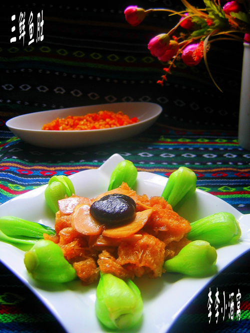 三鲜鱼肚烹饪方法 图片大全及制作所需厨具设备是网友推荐小编整理所得,是网友的分享推荐,是饮食文化的资源共享,中华美食文化是中华文明的具体践行,美食三鲜鱼肚烹饪制作就是在传承中华文化。