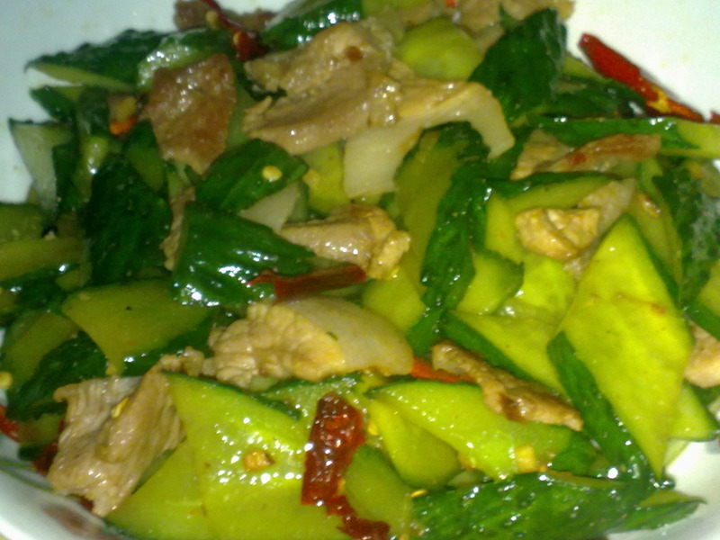 及以下步骤:锅中热底油,放入葱姜末爆锅,出味后放入猪肉、料酒、少量生抽白糖翻炒。 猪肉、黄瓜切片,干辣椒切段,葱姜切末备用。 锅中热底油,放入葱姜末爆锅,出味后放入猪肉、料酒、少量生抽白糖翻炒。 猪肉、黄瓜切片,干辣椒切段,葱姜切末备用。 锅中热底油,放入葱姜末爆锅,出味后放入猪肉、料酒、少量生抽白糖翻炒。 猪肉、黄瓜切片,干辣椒切段,葱姜切末备用。 锅中热底油,放入葱姜末爆锅,出味后放入猪肉、料酒、少量生抽白糖翻炒。 锅中热底油,放入葱姜末爆锅,出味后放入猪肉、料酒、少量生抽白糖翻炒(时间够用的话也可以提前用料酒生抽淀粉将肉腌制15分钟)。 肉多半熟了即可放入黄瓜片,加盐继续翻炒。 黄瓜片半熟时,放入干辣椒和味精,继续翻炒至刮片刚刚变软即可出锅。