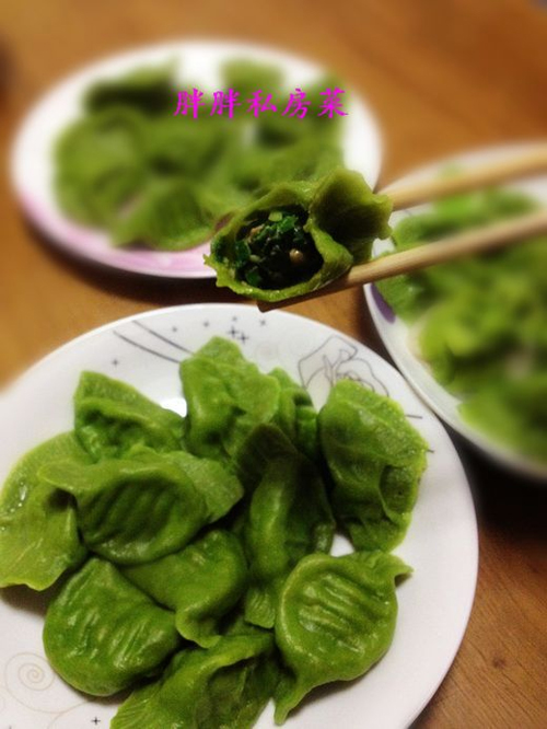 韭菜水饺--这是小年做的水饺,用菠菜汁和水和的面。白、绿两种颜色的水饺,好看又好吃,咸鲜口味,营养也丰富了很多。
