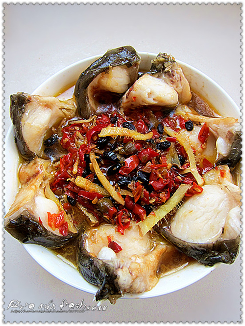 及以下步骤:准备好食材。 取草鱼中间的一段,切成厚1-2cm厚的断。姜切成丝,葱切成段。 准备好食材。 取草鱼中间的一段,切成厚1-2cm厚的断。姜切成丝,葱切成段。 准备好食材。 取草鱼中间的一段,切成厚1-2cm厚的断。姜切成丝,葱切成段。 鱼块用茶油,适量盐,老抽,淀粉腌制2分钟。 将腌好的鱼块整理装盘,碎的放下面,整块的摆成莲花状。 中间放上剁椒,撒上豆豉、姜丝,适量盐,淋上茶油,放上一小碗水。 配好的鱼放在蒸锅或者高压锅内隔水蒸15-20分钟出锅时撒上葱花即可。