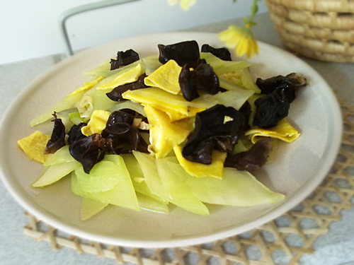 及以下步骤:放盐、鸡粉拌匀,出锅。 莴笋去皮,洗净,切片。 鸡蛋打散,炒熟。 莴笋去皮,洗净,切片。 鸡蛋打散,炒熟。 热锅凉油,依次放花椒、葱花炒香。 放莴笋煸炒。 放提前泡好的木耳。 放炒熟的鸡蛋。 放盐、鸡粉拌匀,出锅。