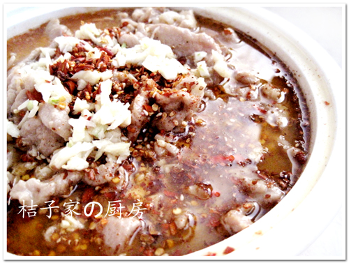 及以下步骤:煮好肉铺在豆腐上撒上辣椒片、芝麻、蒜粒。 一大勺热油烧开浇上~~刺啦!那叫一个香~! 准备材料:猪肉、豆腐、青笋、麻油、辣椒等。 猪肉切片用料酒、淀粉、盐抓均,蒜切碎备用。 豆腐切块焯水。 青笋切丝焯水。 焯好的豆腐和青笋铺在碗底。 高汤或清水1碗烧开,倒入麻油再下肉片煮熟。(嘿嘿~我用的是前晚水煮肉的汤,滤干净再用的) 煮好肉铺在豆腐上撒上辣椒片、芝麻、蒜粒。 一大勺热油烧开浇上~~刺啦!那叫一个香~!