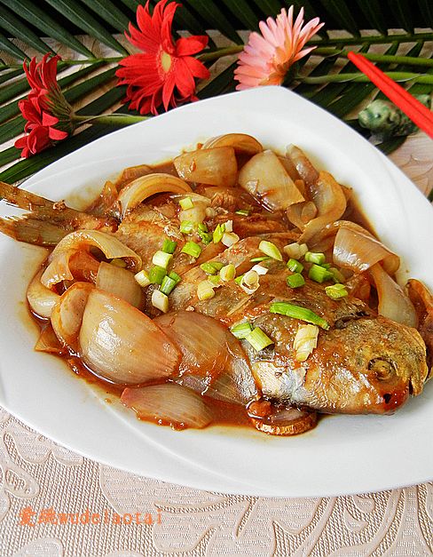 洋葱片红烧鲳鱼美味诠释: