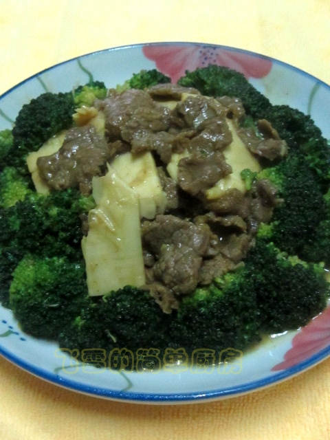 及以下步骤:加少许干淀粉搅拌一下备用 绿椰菜掰成小朵 入开水锅焯一下 再用冷水过一下备用 冬笋剥去壳,切成片备用 坐锅热油一小勺 先下冬笋片炒一炒 加入拌好的牛肉片拌炒 加一点热水略烧片刻 出锅装盘