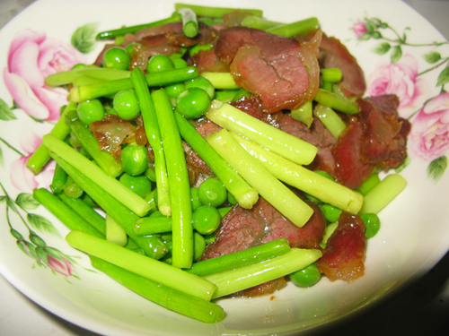 腊肉炒蒜苔豌美味诠释: