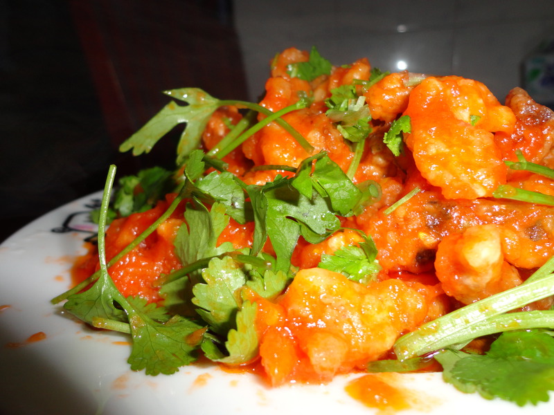 2、加到装有鱼的盘子上,就成豆腐鱼了,鱼的辣味加上豆腐的豆香味,哎,美极了