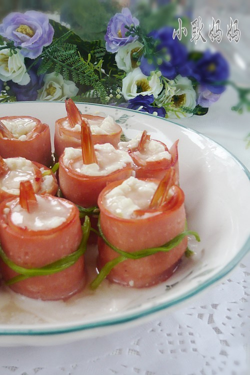 虾仁鲜,豆腐嫩,红肠香,融合在一起用蒸的方法绘制而成,营养又美味,咬一口,汤汁流淌出鲜美