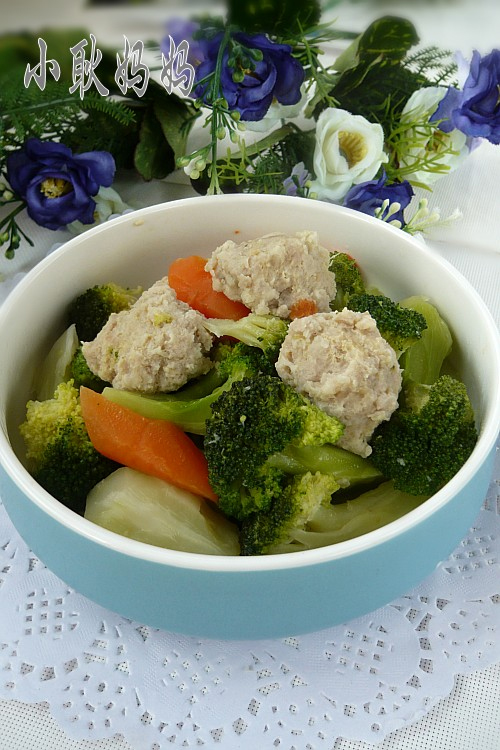 西兰花(1棵) / 胡萝卜(1根) / 肉圆(适量)
