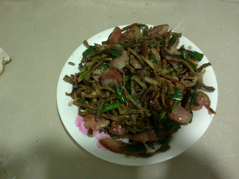腊肠和豆角干都是我的喜爱的,所以我让他们成了一家子,呵呵,腊肠是一个四川的朋友送和,豆角干是自己做的,从小见妈妈做豆角干,因为爱吃,所以也跟妈妈学会做了