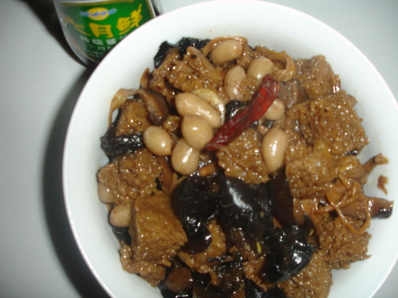 花生米(适量) / 木耳(适量) / 干香菇(适量) / 烤麸(3片) / 干黄花(适量)
