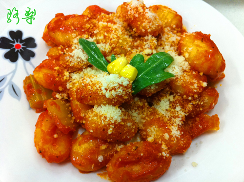 在意大利它叫做(gnocchi di patate),翻译过来就是土豆年糕。不过我更喜欢叫它土豆丸子。它主要是用土豆泥混合面粉和少许的米粉做成,口感软糯但不会粘牙,浓郁的土豆香配上酸甜的番茄酱,让人吃了还想吃!(哈哈..没有广告)