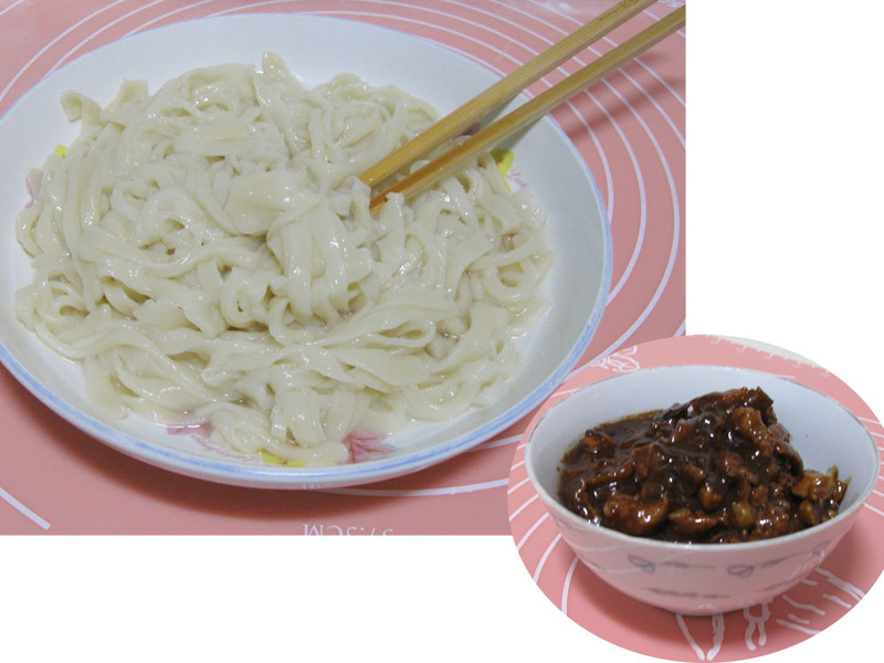 及以下步骤:做好的酱 面和水2:1,搅成光滑的面团,醒20分钟 把面团擀成长方形,别忘了撒垫面(最好是玉米面,我家没有了),用白面做垫面真的不太好操作 折好后用刀切成粗细均匀的面条,这时就可以坐锅烧水了,水开后下入面条 这是煮好的面条 老公的肉丁卤手擀面上桌了 把面团擀成长方形,别忘了撒垫面(最好是玉米面,我家没有了),用白面做垫面真的不太好操作 折好后用刀切成粗细均匀的面条,这时就可以坐锅烧水了,水开后下入面条 这是煮好的面条 老公的肉丁卤手擀面上桌了
