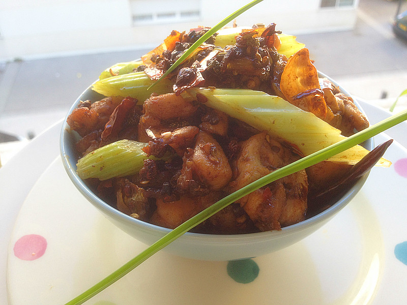 马上就要去学西餐了,最近一直都在忙着收拾东西,虽然来的时间不长,可我的东西实在太多了。 送的送,卖的卖,扔的扔,真是后悔平常什么东西都往家里买。、 兔肉对很多人来说都是很鸡肋的肉食,营养价值极高,被誉为美容之肉,可烹饪难度颇大,主要是因为其骚味较重,而且骨头十分坚硬,大多数是凉拌、红烧。 四川的干锅大有取代火锅之势,成为百菜一味的新掌门人。先是炒的一大锅满满的肉,而后,调料还可以炒些蔬菜。香味更胜火锅,却少了份腾腾的热气。 藤椒即青花椒,其麻味和清香气更重,是最近十分流行的川菜调料,其味之重,连许多四川人也很难接受,受不了的朋友可以不加。我从国内托运了一大件包裹,里面也有一小袋藤椒,我去取包裹的时候,放包裹的房间里都充斥着浓浓的藤椒味。藤椒比较常用的做法是藤椒油,做法和花椒油一样,可做成藤椒鸡等菜肴。 糍粑辣椒是炒制四川火锅底料的主要材料,其炒制后颜色鲜红,香气浓郁。做法是把干辣椒用热水泡软,用搅拌机打碎即可。