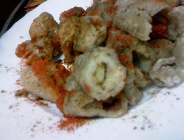 及以下步骤:猪肠子过水,煮熟后比较肥的地方我里面塞了葱段,瘦的地方就是刨开切一刀 挨个弄好后,滚上干淀粉,滚啊滚,滚均匀 猪肠子过水,煮熟后比较肥的地方我里面塞了葱段,瘦的地方就是刨开切一刀 挨个弄好后,滚上干淀粉,滚啊滚,滚均匀 猪肠子过水,煮熟后比较肥的地方我里面塞了葱段,瘦的地方就是刨开切一刀 挨个弄好后,滚上干淀粉,滚啊滚,滚均匀 猪肠子过水,煮熟后比较肥的地方我里面塞了葱段,瘦的地方就是刨开切一刀 挨个弄好后,滚上干淀粉,滚啊滚,滚均匀 大火快炸,炸到没塞葱和塞了葱的都脆为止,我炸了3次的说 炸完后,洒上各色粉,味道不错,瘦的位置干脆、酥口,至于肥的地方,外层脆里面软嫩,葱香满口的说
