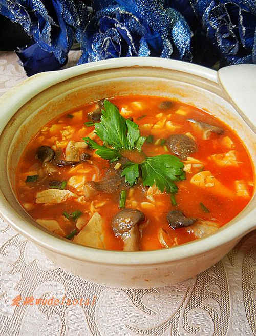 茄汁豆腐秀珍菇煲,是一道简单易做,营养丰富又价廉物美的开胃汤煲,好喝又有营养.