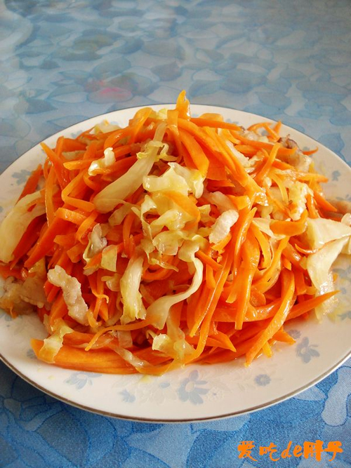 及以下步骤:加盐调味翻炒均匀出锅即可。 泡大头菜切成丝。 泡胡萝卜切成丝。 泡大头菜切成丝。 泡胡萝卜切成丝。 猪肉切丝。 热锅下油,放入姜丝炝锅。 放入肉丝炒至变色。 放入泡菜丝旺火翻炒2分钟。 加盐调味翻炒均匀出锅即可。
