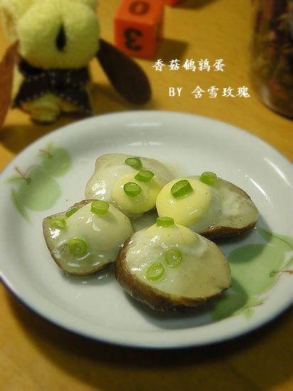 及以下步骤:将香菇放入锅中,大火烧开,改小火蒸10分钟左右 趁着蒸蛋的时候,做高汤芡,取高汤一碗 加入一匙淀粉 再将涂抹香菇剩下的盐和白胡椒粉,加少许到汤中 倒入锅中 大火煮至沸腾透明即可 蒸好的香菇鹌鹑蛋 将蒸出来的水倒掉,其实哩,这个好香,我喝掉了 给每个上面浇上高汤芡,洒上葱花 给每个上面浇上高汤芡,洒上葱花