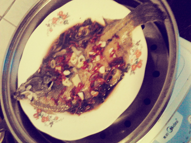 及以下步骤:把比目鱼去鳞,洗干净放盘 放入生抽、豆瓣酱、老干妈、盐、白糖. 把比目鱼去鳞,洗干净放盘 放入生抽、豆瓣酱、老干妈、盐、白糖. 把比目鱼去鳞,洗干净放盘 放入生抽、豆瓣酱、老干妈、盐、白糖. 把比目鱼去鳞,洗干净放盘 放入生抽、豆瓣酱、老干妈、盐、白糖. 放入蒸锅 蒸20-30分钟 即可 放入葱花、姜末、蒜末、辣椒(依个人口味)