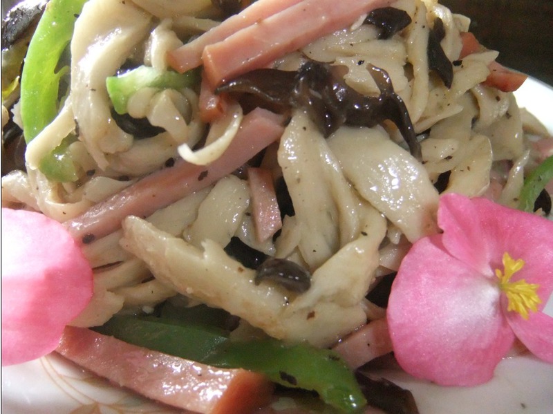 盐(适量) / 色拉油(适量) / 香油(适量) / 青椒(适量) / 黑木耳(适量) / 玉米粉(适量) / 黑胡椒末(适量) / 方火腿(适量)