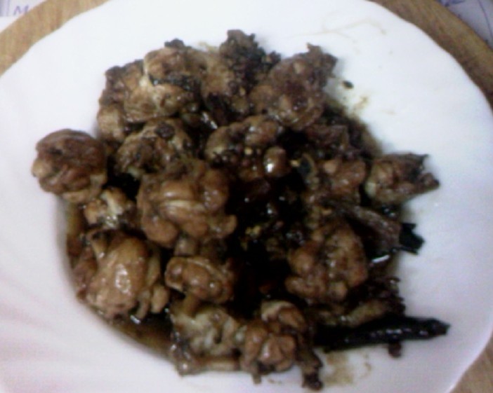 文文不爱吃鸡类的东西 除了烤鸡 今天做了简版的辣子鸡 还是那句话 材料有限 不过味道不错哦 看他吃的 happy的 两碗米饭了 当然 我还做个洋葱拌木耳