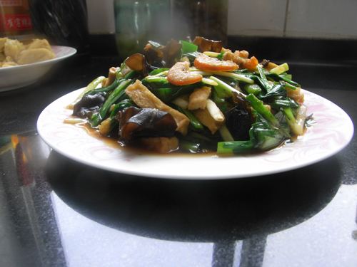 北豆腐(四两) / 水发海米(一两) / 韭菜黄(约一斤)