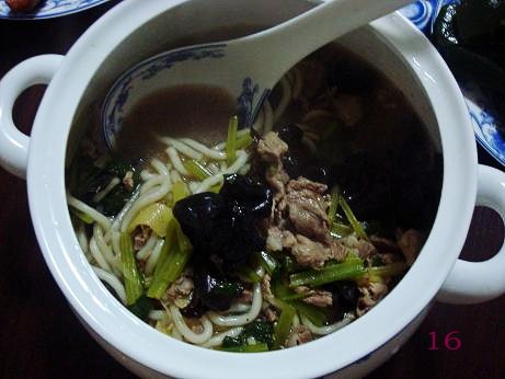 3:所有原料配料几乎是一起放入锅中,不用煮太长时间,2分钟羊肉变色即可,因为羊肉切的片较薄,如果时间长了,就嚼不动了!