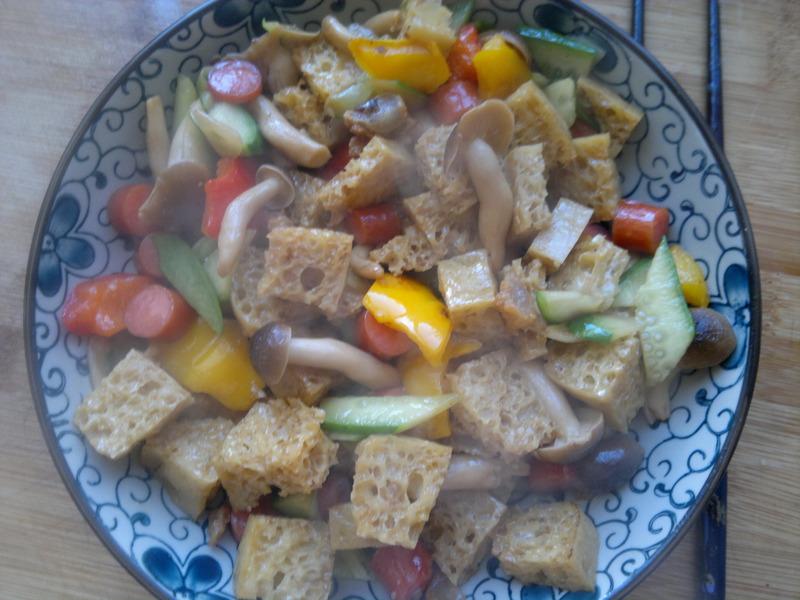4、香喷喷热气腾腾的面筋炒好了。。面筋劲道软软的像海绵。很好哦!!!!!