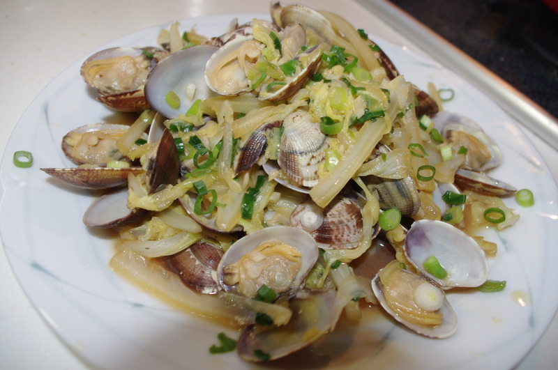 及以下步骤:将锅烧热,滴入油,将蒜与姜末炒香,待出香味后,将蛤蜊与白菜倒入锅中,加入酒,盖上锅盖焖5分钟左右。 将蛤蜊洗净,白菜与配料切好,白菜切条,厚的地方可以切薄一点容易熟,小葱,姜与蒜切末,不必太细。 将锅烧热,滴入油,将蒜与姜末炒香,待出香味后,将蛤蜊与白菜倒入锅中,加入酒,盖上锅盖焖5分钟左右。 将蛤蜊洗净,白菜与配料切好,白菜切条,厚的地方可以切薄一点容易熟,小葱,姜与蒜切末,不必太细。 将锅烧热,滴入油,将蒜与姜末炒香,待出香味后,将蛤蜊与白菜倒入锅中,加入酒,盖上锅盖焖5分钟左右。 将蛤蜊洗净,白菜与配料切好,白菜切条,厚的地方可以切薄一点容易熟,小葱,姜与蒜切末,不必太细。 将锅烧热,滴入油,将蒜与姜末炒香,待出香味后,将蛤蜊与白菜倒入锅中,加入酒,盖上锅盖焖5分钟左右。 将蛤蜊洗净,白菜与配料切好,白菜切条,厚的地方可以切薄一点容易熟,小葱,姜与蒜切末,不必太细。 将锅烧热,滴入油,将蒜与姜末炒香,待出香味后,将蛤蜊与白菜倒入锅中,加入酒,盖上锅盖焖5分钟左右。 然后加入酱油翻炒几下在撒上小葱就可以入盘出锅了。