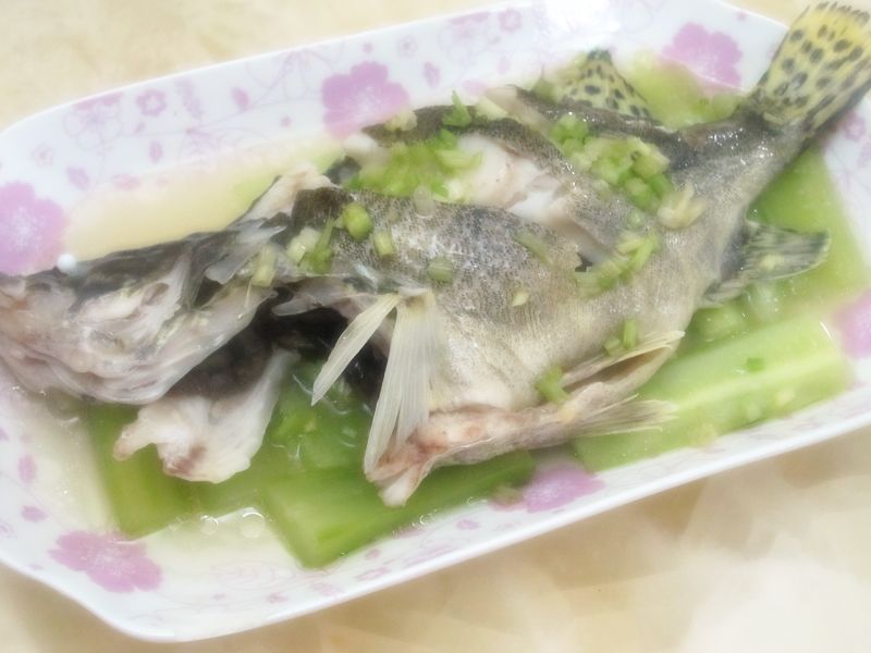 第一次尝试用青瓜这种材料来蒸鱼,取其清香,桂鱼本身算是不腥了,所以没下去腥的调料。蒸出来真是很清淡,哈哈。