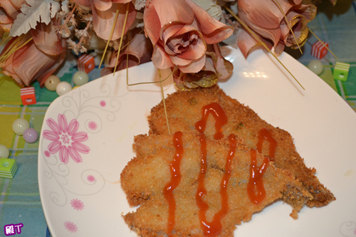 7、出锅,装盘。(最后可依个人口味淋上番茄酱或撒点椒盐)