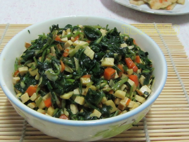 5、再用凉水冲凉挤干,切细备用(切细忘拍照了)