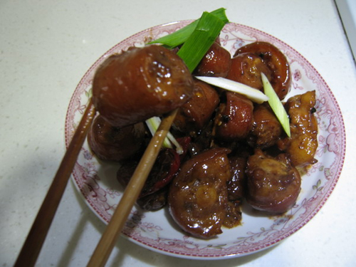 最近,因朋友之约,好好开发一些高营养,低脂肪的菜,想到做了这道红烧猪尾巴,呵呵! 猪尾巴就是猪的尾巴,不是别的尾巴,^_^也称皮打皮、节节香。由皮质和骨节组成,皮多胶质重,丰富的胶质据说美容效果不错,另外,猪尾巴也含丰富的蛋白质,对丰胸的贡献也不错哦!猪尾还有补腰力、益骨髓的功效。有补阴益髓的效果,可改善腰酸背痛,预防骨质疏松;在青少年男女发育过程中,可促进骨骼发育,中老年人食用,则可延缓骨质老化、早衰。可见,这个小小的一节尾巴,作用还真不少......