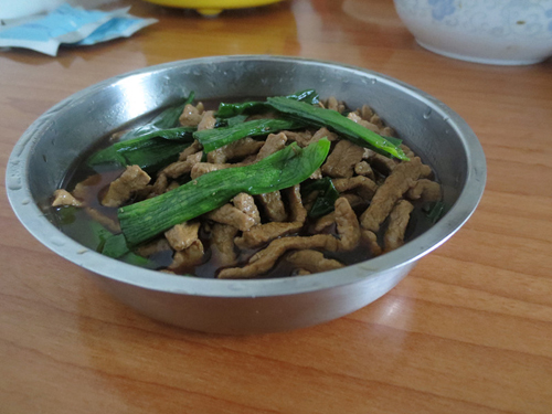 6、蒜苗叶子,和已经煮好的瘦肉丝