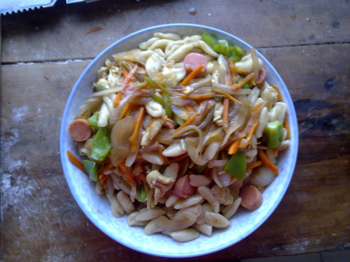 这是我妈妈教我做的一道面食。做法很简单,吃起来很好吃。可以煮着吃,也可以炒着吃。随你心情喽。老人一般都爱煮着吃,年轻人嘛当然喜欢炒着吃喽,我更喜欢多放一些醋。