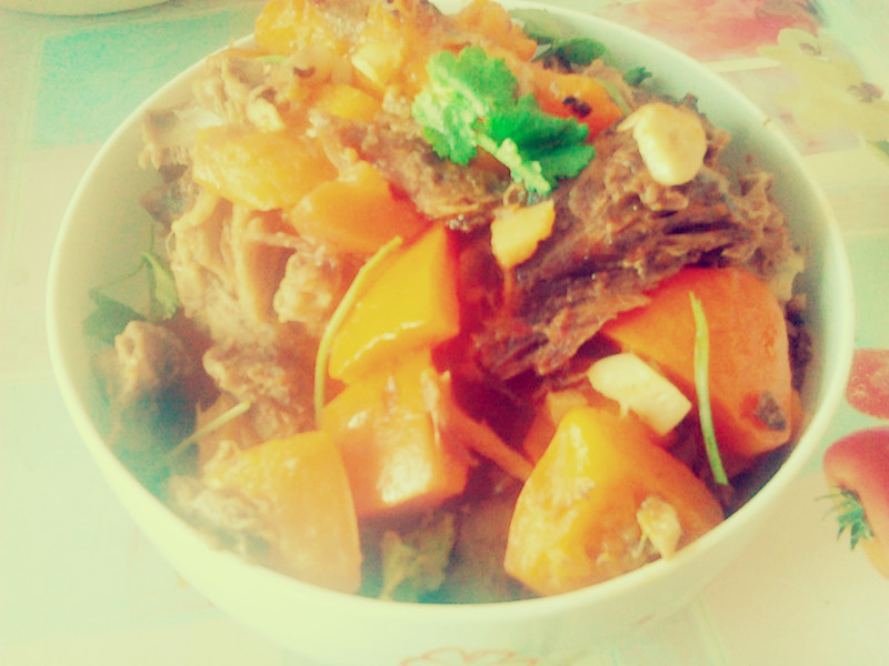 美味南瓜捞肉制作步骤: