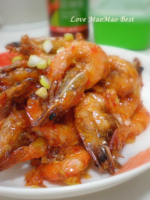 及以下步骤:加入糊椒粉 腌制10分钟。将葱、姜、蒜切成沫备用 这道菜主要调料泰式甜辣酱 锅中倒油烧八成热 倒入虾快速炸成皮略焦状 另取一炒锅倒入少许油倒入葱、姜、蒜沫爆出香味 倒入泰式甜辣酱炒制一会儿 倒入炸好的虾翻炒片刻出装盘即可 倒入泰式甜辣酱炒制一会儿 倒入炸好的虾翻炒片刻出装盘即可