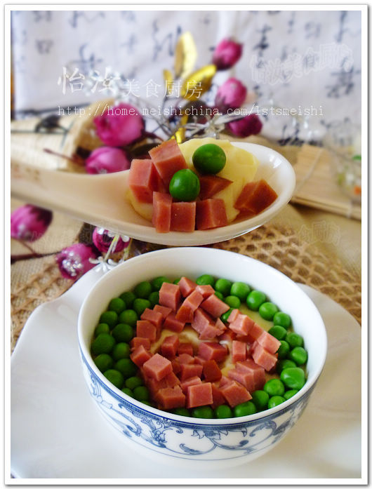 5、青豆和火腿可以少放一些会更好看一些。