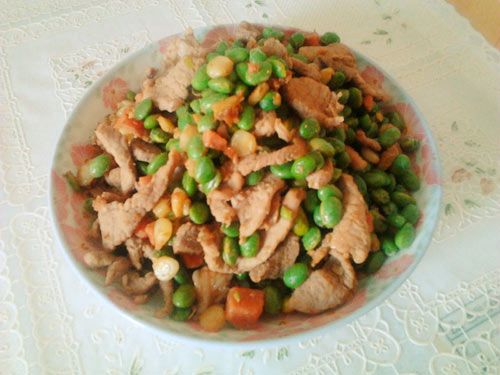 及以下步骤:待肉熟后,放入青豆,放入酱油、料酒、耗油,翻炒 等到青豆6成熟,放入玉米粒,放入盐、味精、鸡精,翻炒 大火翻炒,汤汁收到这里即可 香喷喷的青豆火腿烩肉,就做好了 秀秀吧 待肉熟后,放入青豆,放入酱油、料酒、耗油,翻炒 等到青豆6成熟,放入玉米粒,放入盐、味精、鸡精,翻炒 大火翻炒,汤汁收到这里即可 香喷喷的青豆火腿烩肉,就做好了 秀秀吧