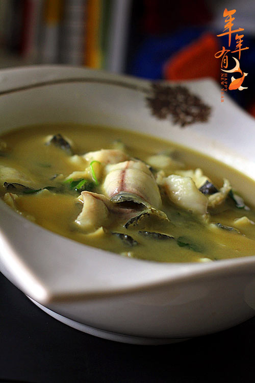 6、草头垫底,鱼片放上面,过滤鱼汤就可以了。