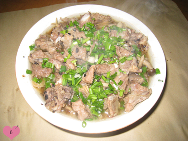 6、隔水蒸半小时就可以,起锅时散上葱花。一碗香气腾腾的排骨就好了。