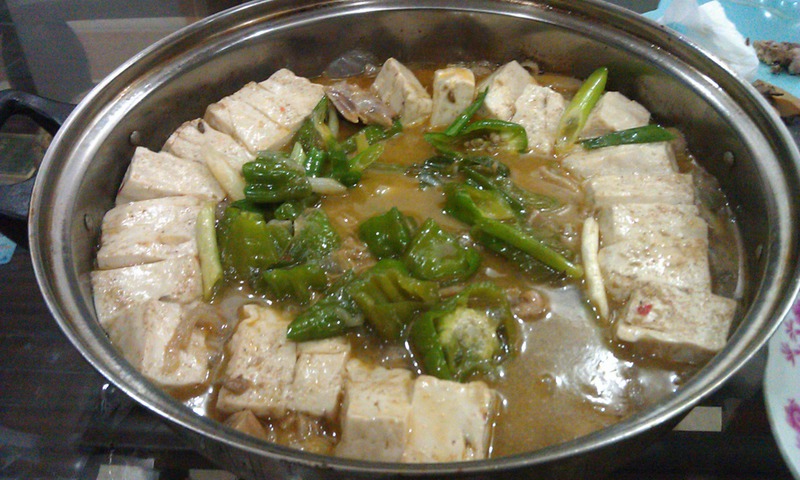 及以下步骤:再炒口蘑和平菇。 最后放入鸡肉,并把鸡肉炒白。 最后放入肉块,并把肉块炒白。 换平底锅,加入适量水,没过锅内食材,放入香叶,茴香,八角,花椒等物,大火煮20分钟。 放入豆腐块,煮10分钟。最好把汤汁煮进豆腐里。 放入青椒,葱段,再煮3分钟。 最后放入适量酱油,盐,鸡精调味即可。 放入豆腐块,煮10分钟。最好把汤汁煮进豆腐里。 放入青椒,葱段,再煮3分钟。 最后放入适量酱油,盐,鸡精调味即可。
