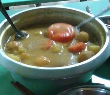 后来加的水不能过多,因为还要加入椰浆,水量过多会使汁液过稀。红萝卜可以比马铃薯先放,因为红萝卜比马铃薯难煮软。如果有饭的话,咖喱拌饭将是一个不错的选择!o(∩_∩)o