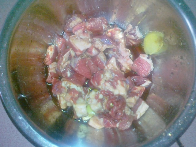 6、爆炒后,放入砂锅内,放水。小火慢炖。。。。。2个小时就可以吃了。。。很香哦。。。。
